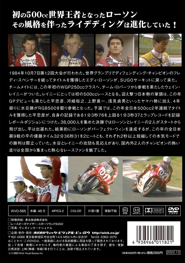 TBCビッグロードレースDVD化の第4弾。1984年開催DVDの発売開始!SUGOからご購入された方には独自の特典として、当時撮影された貴重な画像の生写真1枚が付いてきます。10種類の中からどれが当たるかはお楽しみに!