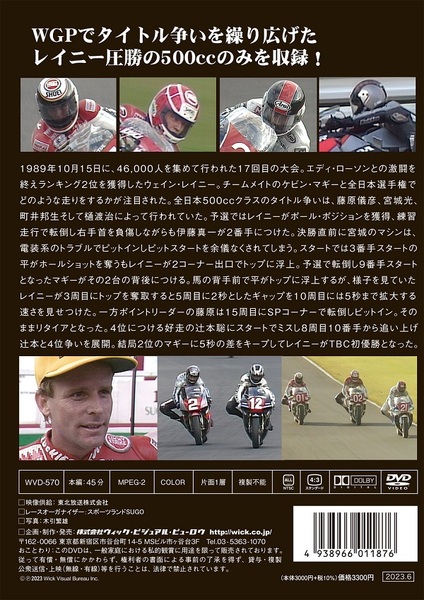 TBCビッグロードレースDVD化「第9弾」。1989年開催DVDの発売開始!SUGOからご購入された方には独自の特典として、当時撮影された貴重な画像の生写真1枚が付いてきます。(10種類の中からどれが当たるかはお楽しみに!)